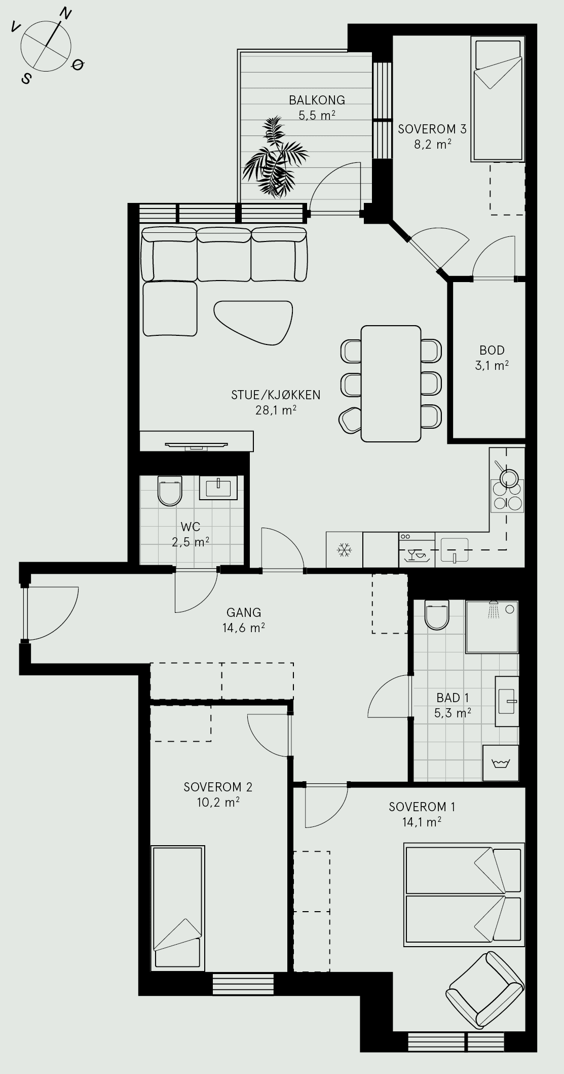 1-roms leiligheter