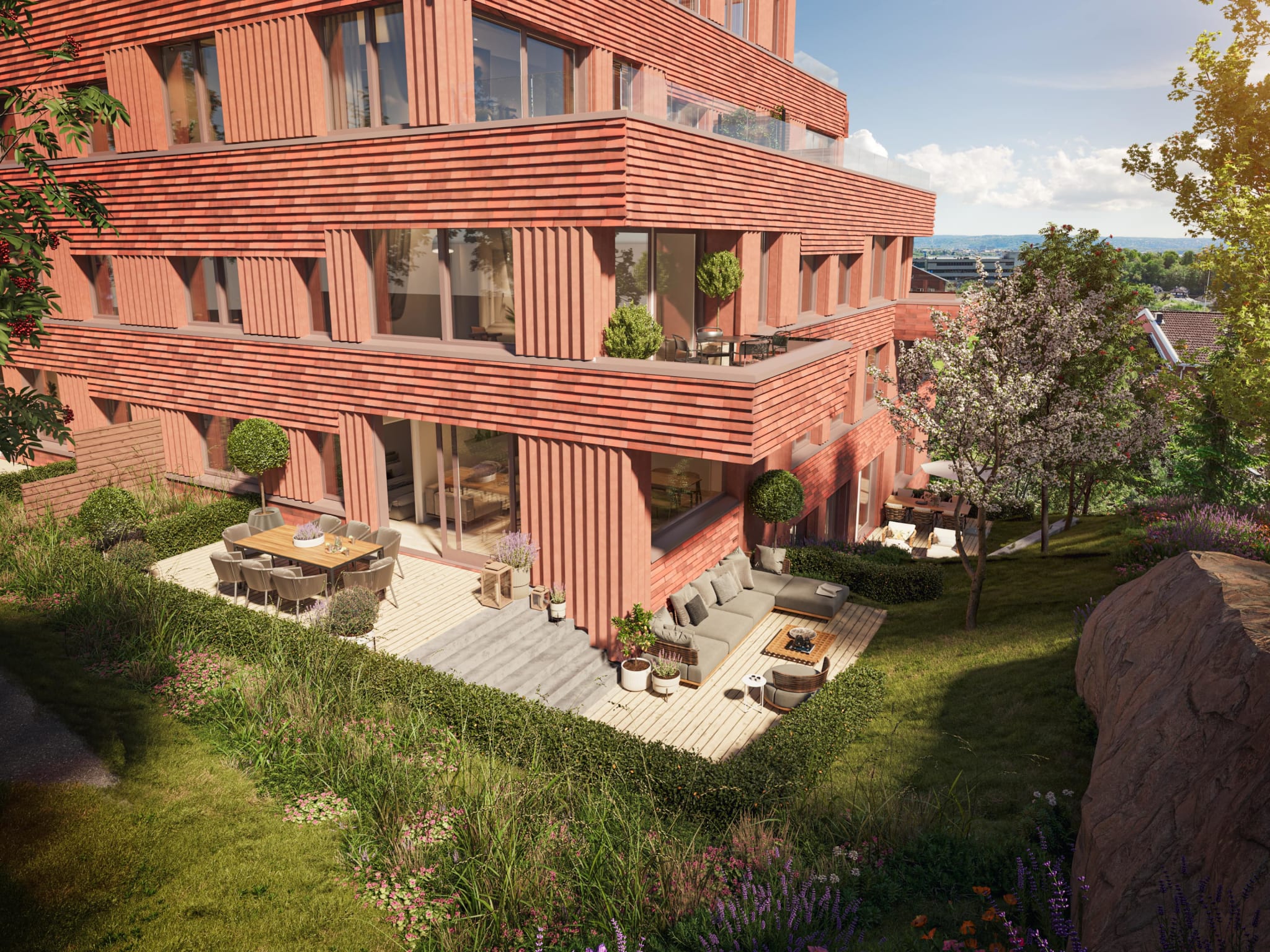 Uteområder utformet av landskapsarkitekt